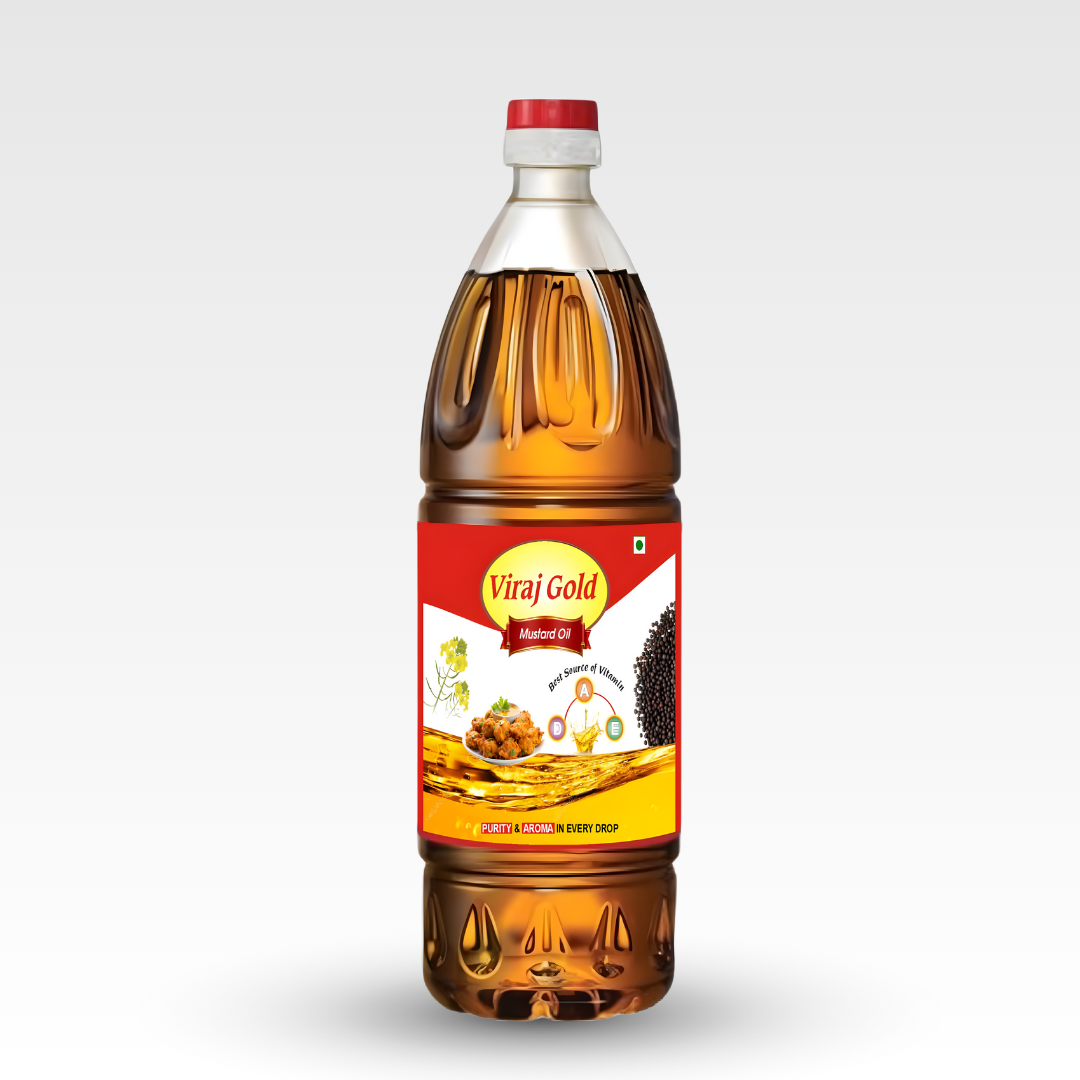 Viraj Gold Mustard Oil is crafted from premium mustard seeds to deliver the perfect balance of purity, aroma, and authentic taste. Its natural pungency and golden color enhance the flavor of every Indian dish—making it a household favorite for daily cooking.